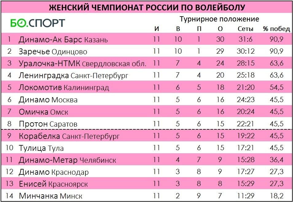 Сегодня двумя матчами завершился 11-й тур открытого женского чемпионата России по волейболу.