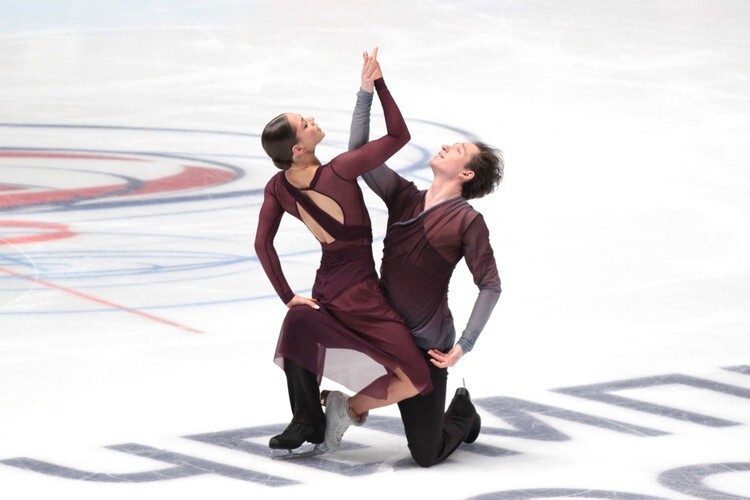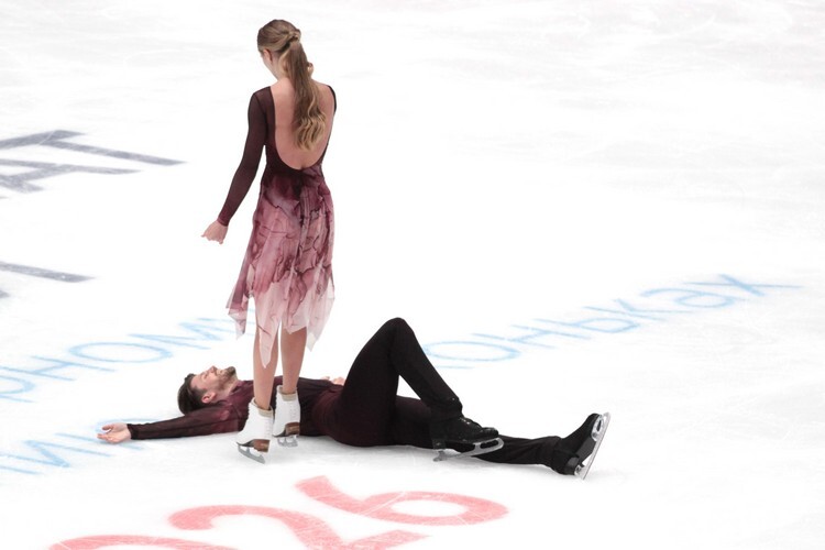 2. Александра Степанова пытается поднять Букина со льда после удачного проката.