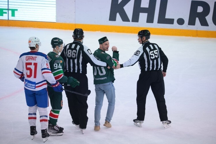 Как стало известно «БИЗНЕС Online», сегодня «Ак Барс» получил выплату в 500 тыс. рублей от блогера Талипа Миннегалиева, который выбежал на лёд «Татнефть Арены» в домашнем матче КХЛ регулярного чемпионата-2022/23 со СКА (5:2).