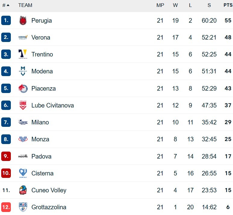 Волейболисты «Пьяченцы» в матче чемпионата Италии на своей площадке со счётом 3:1 (23:25, 25:23, 25:21, 25:22) обыграли «Трентино», несмотря на травмы двух игроков.