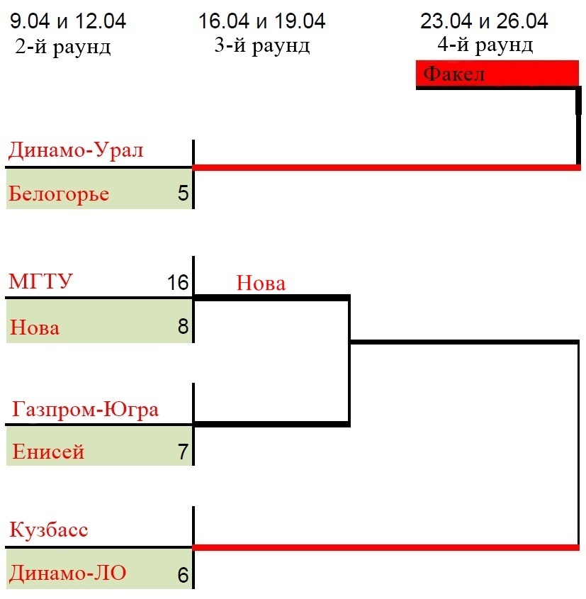 В следующем раунде плей-офф «Нова» сыграет с победителем пары «Газпром-Югра» – «Енисей».