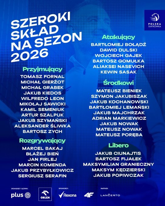 Главный тренер сборной Польши Никола Грбич объявил расширенный состав команды на сезон-2026, в котором нет многих звёздных игроков.