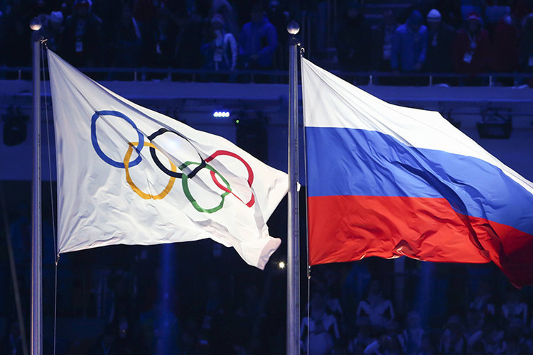 В Риге поменяли флаг России: теперь в центре города на площади находится флаг Олимпийского комитета России.