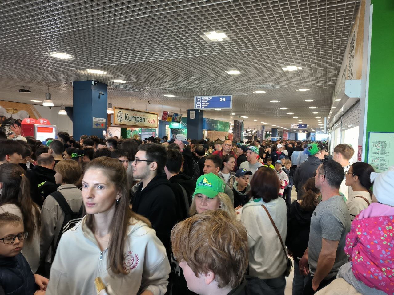 Игроков рассадили по секторам на втором уровне арены, к каждому столу растянулись многометровые очереди. Люди стоят по 15-20 минут, чтобы попасть к своим кумирам, а хоккеисты активно подписывают карточки.