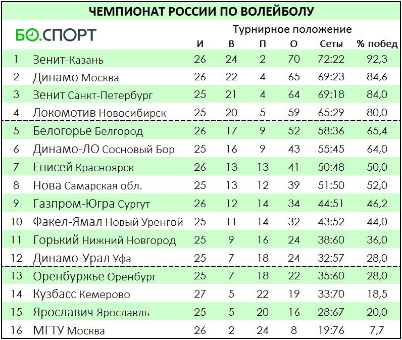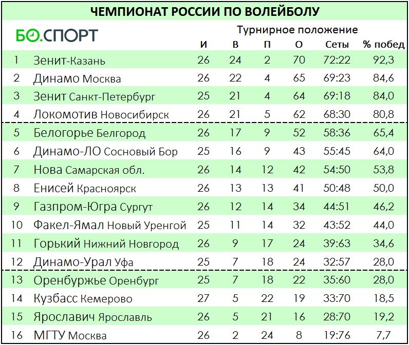 Зенит СПб – Динамо-ЛО – 3:0 (25:19, 25:20, 25:17)