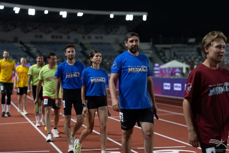 13. А на второй день прошла медиа-эстафета. На дорожку вышли пятикратный обладатель Кубка Гагарина, депутат Госсовета РТ Данис Зарипов, экс-форвард «Ак Барса» Александр Бурмистров, либеро «Зенит-Казань» Илья Фёдоров, министр спорта РТ Владимир Леонов, серебряный призёр ЧМ по водным видам спорта в Сингапуре Никита Шлейхер и экс-форвард УНИКСа Павел Антипов.