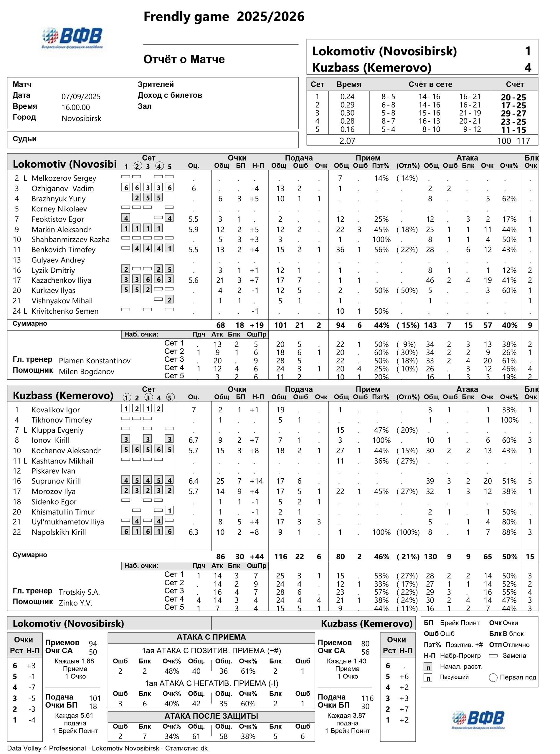Локомотив – Кузбасс – 4:1 (26:24, 24:26, 25:22, 25:19, 15:9)