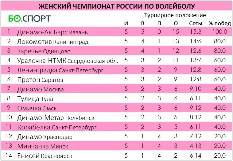 Сегодня матчем в Санкт-Петербурге завершился 5-й тур открытого женского чемпионата России по волейболу.