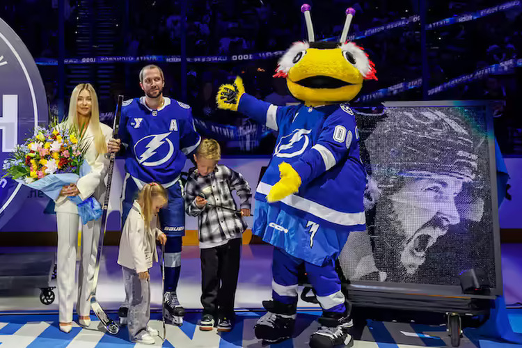 «Тампа-Бэй» перед домашним матчем регулярного чемпионата НХЛ с «Далласом» (2:1) провела специальную церемонию в честь 1000 очков, набранных Никитой Кучеровым в НХЛ.