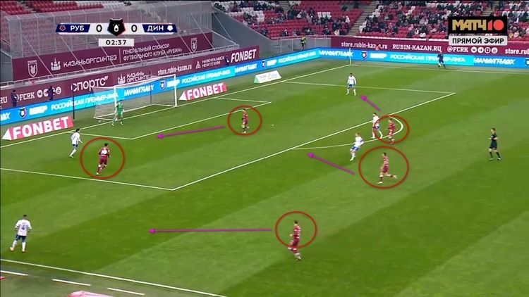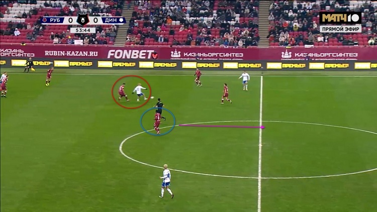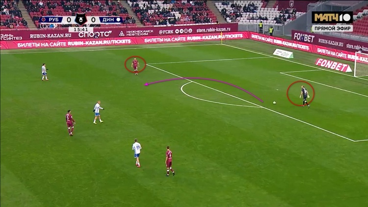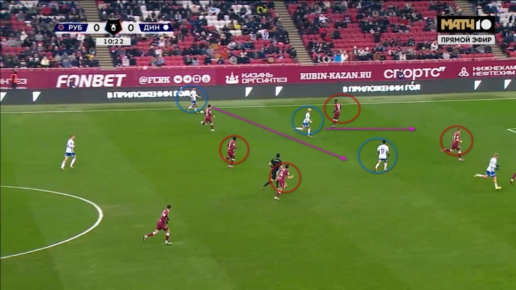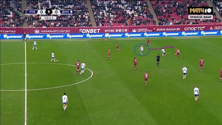 Как можно понять, это была не единственная попытка «Динамо» прорваться через эту зону. В еще одном эпизоде Бителло опять остался между линиями и просил передачу вперед на свободное пространство, но пас ему так и не последовал.