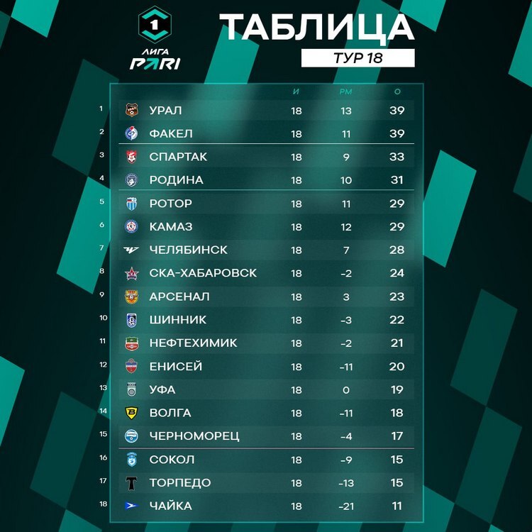 В первенстве Первой лиги завершился 18-й тур – команды начали второй второй круг и до зимнего перерыва остаётся все меньше матчей. В прошедшие выходные «Урал» переиграл хабаровский СКА, и вышел на первое место в турнирной таблице. В тоже время матч «Родина» – «Нефтехимик» обернулся большим скандалом, а «Торпедо» опять осталось без победы.
