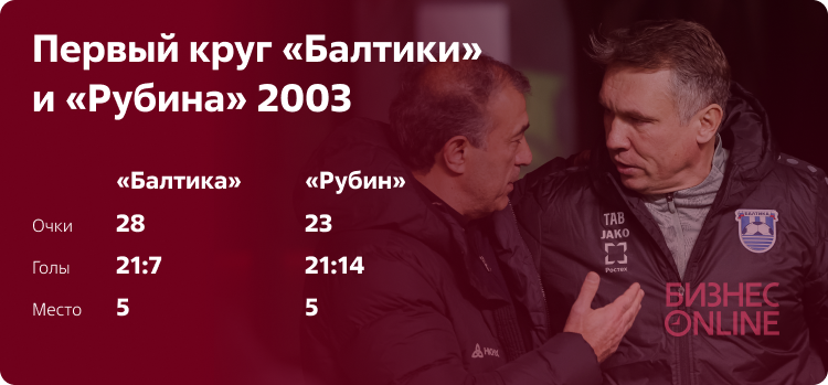 Если рассматривать первый круг чемпионата, то «Балтика» идёт на том же месте, что и «Рубин» в 2003-м. У калининградцев лучше только разница голов и больше набранных очков.