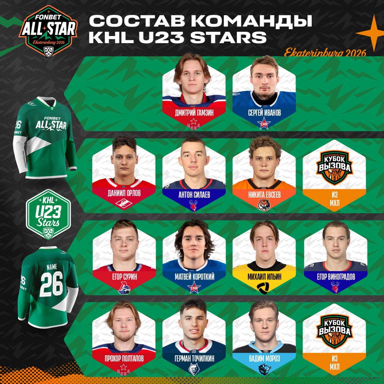 КХЛ объявила окончательные составы на предстоящий Матч звёзд. В этом году он пройдет в измененном формате: вместо привычных дивизионов будут тематические команды – «Звёзды Урала», «Звёзды России», «Звёзды мира» и «Звёзды U23». Игры запланированы на 7–8 февраля и пройдут в Екатеринбурге на «УГМК-Арене».