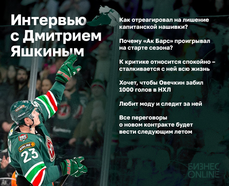 Дмитрий Яшкин проводит последний сезон по действующему контракту с «Ак Барсом». Сейчас он – третий бомбардир команды и лучший снайпер. Лидер казанской команды в интервью корреспонденту «БИЗНЕС Online» признался, что хотел бы остаться в «Ак Барсе», как и любой другой хоккеист. При этом отметил, что все переговоры о возможном новом контракте будет вести летом. Он признался, что полюбил Казань за три года жизни, а «Ак Барс» может назвать особенной командой в своей карьере.