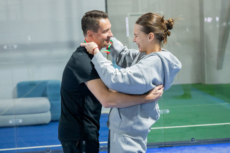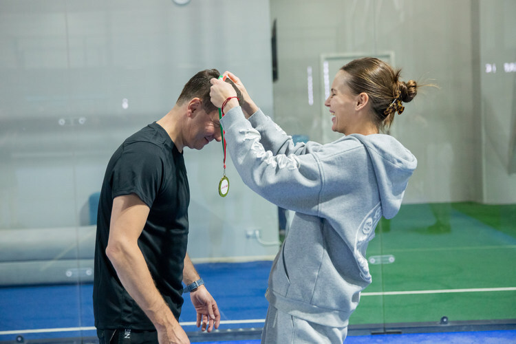 Кудерметова тоже наградила Владимира Леонова: это медаль за участие в турнире по паделу.