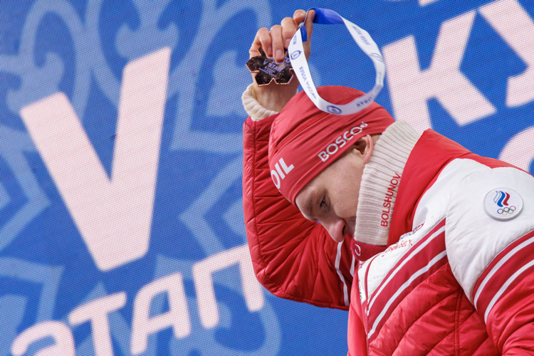 На этапе Кубка России в Казани Большунов выиграл бронзовую медаль и тут же снял её.