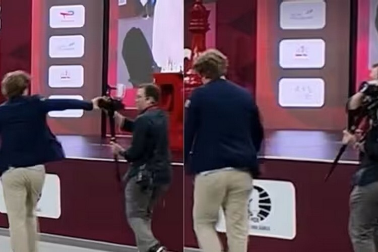 Магнус Карлсен оттолкнул оператора после того, как проиграл татарстанскому шахматисту Владиславу Артемьеву на чемпионате мира.