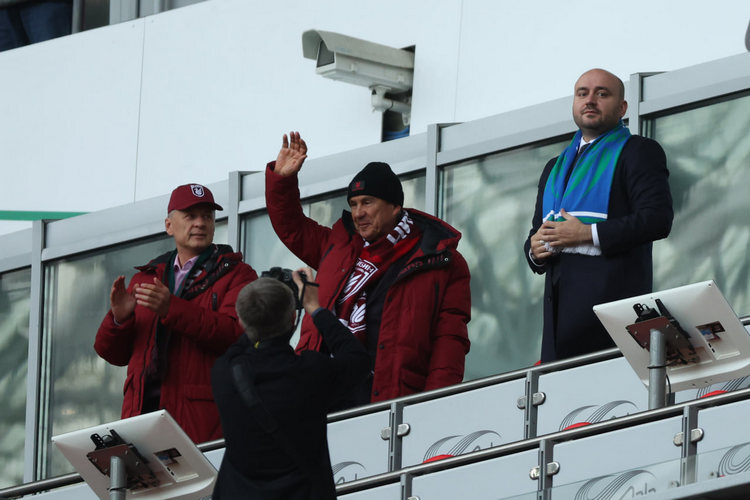 Рустам Минниханов смотрит матч «Рубина» и «Крыльев Советов» в компании губернатора Самарской области Вячеслава Федорищева.
