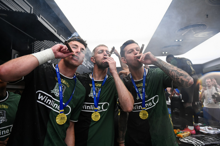 Чемпионские сигары в чемпионской раздевалке.
