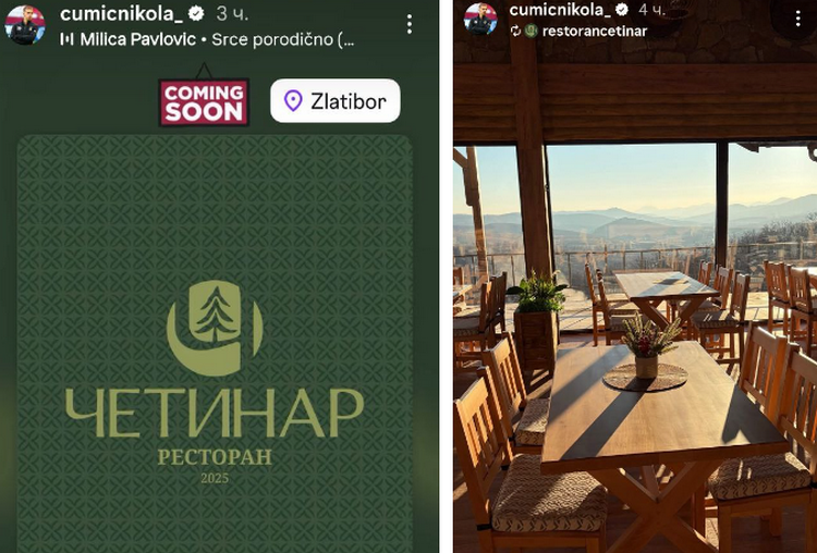 Никола Чумич в прошлом году тоже стал отцом и его посты в соцсетях посвящены времяпрепровождению с дочкой. Но ещё Чумич похвастался новым делом – открыл ресторан под названием «Четинар» в Златиборе.