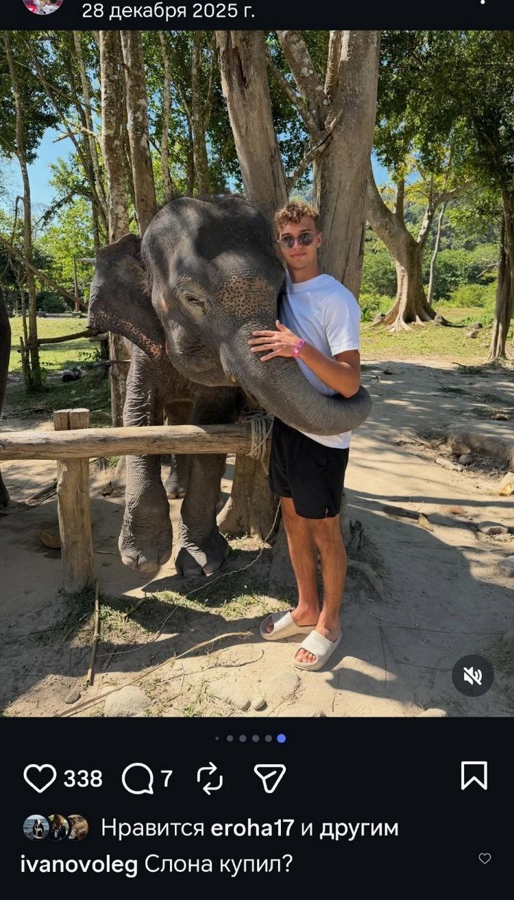 А ещё Илья выложил фото со слоном, на что Олег Иванов саркастически прокомментировал: «Слона купил?»