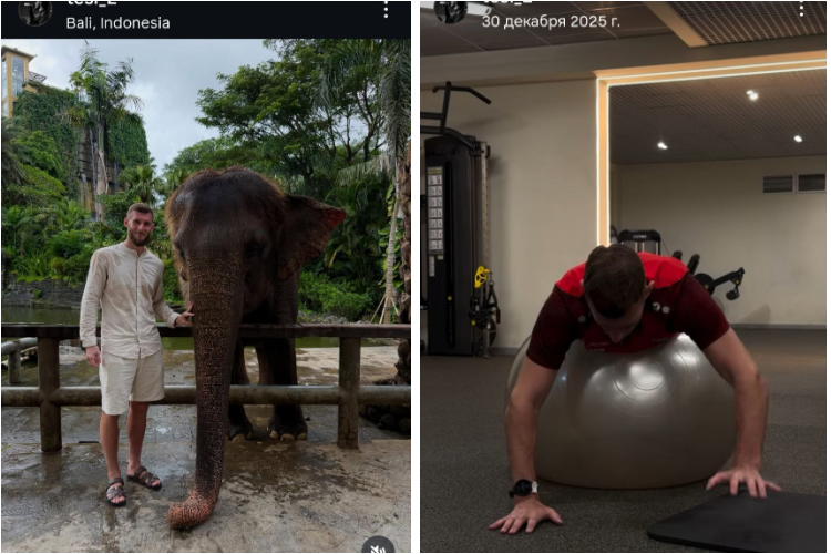 Со слоном есть фото и у Егора Тесленко, правда, сделанное в Индонезии. А 30 декабря Егор уже был в тренажёрном зале.