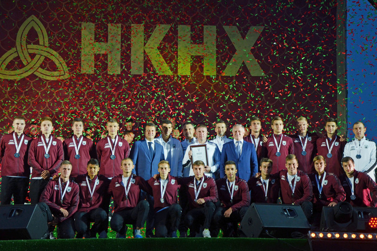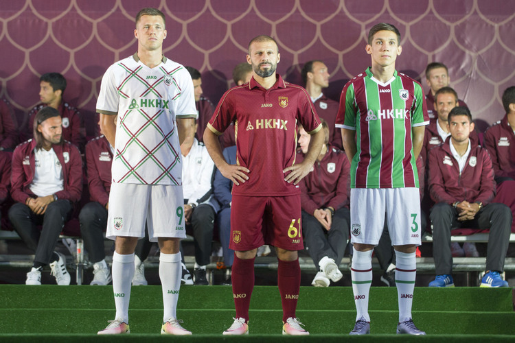 Максим Канунников, Гекдениз Карадениз (завершит карьеру через два года) и Эльмир Набиуллин на презентации формы.