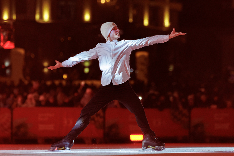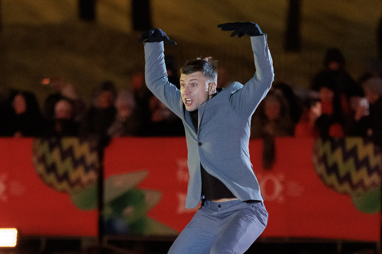 14. А еще было выступление заслуженных артистов цирка на льду. Мария Голубева взяла несколько обручей и выполняла программу с ними. А вот Алексей Усков вооружился гигантским металлическим кубом, который с легкостью поднял перед выступлением. Сразу после проката фигурист принялся разбирать приспособление. Делал он это без перчаток – спустя минуту руки Ускова приобрели заметно красный оттенок.