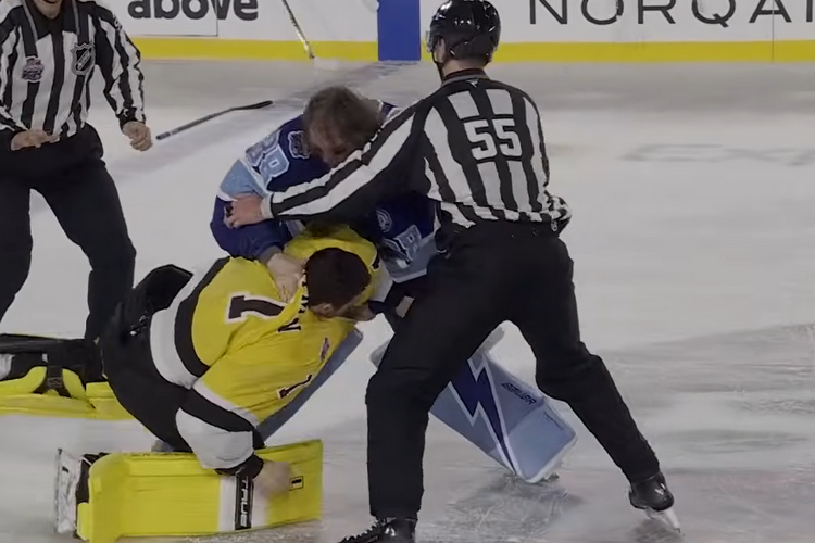 Две недели назад Сергей Бобровский шокировал всех, устроив драку в матче НХЛ. На тот момент вратари не сбрасывали ловушки и блины почти шесть лет, в этот раз ждать пришлось не так долго. В матче между «Тампа-Бэй» и «Бостоном» (6:5) на открытом воздухе ещё один россиянин Андрей Василевский подрался с американским вратарём Джереми Свэйменом. Воспитанник «Салавата Юлаева» не просто развеселил публику, а разогнал мощнейший камбэк своей команды.