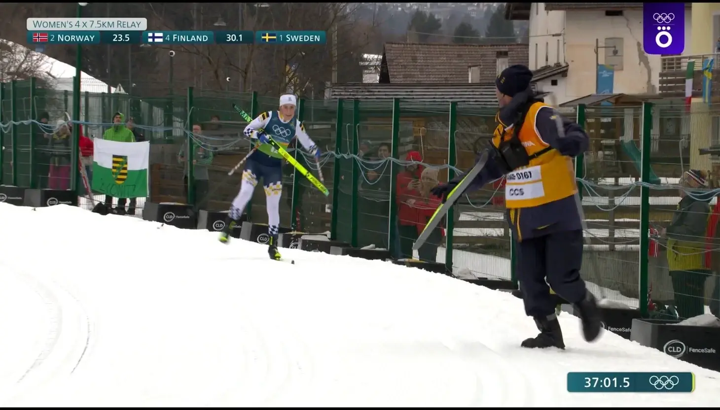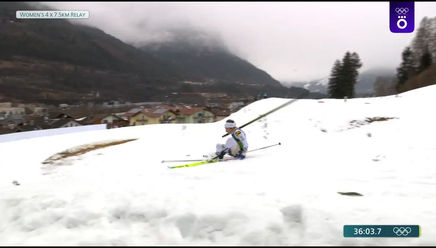 В результате падения Андерссон сломала лыжу и побежала на финиш на одной лыже. Спустя 20–30 секунд к Эббе подбежал тренер шведской сборной с лыжей, однако и он упал. В итоге Андерссон передала эстафету восьмой, отставая от норвежской сборной на 78 секунд.