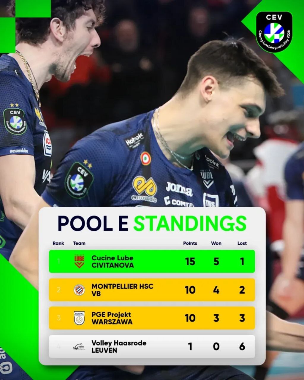 С шестью победами завершил групповой этап и польский «Люблин», который после подписания Вильфредо Леона переживает свои лучшие времена. Пять лет назад команда играла во втором дивизионе и о ней мало кто слышал, а теперь это обладатель всех национальных трофеев и участник плей-офф Лиги чемпионов.