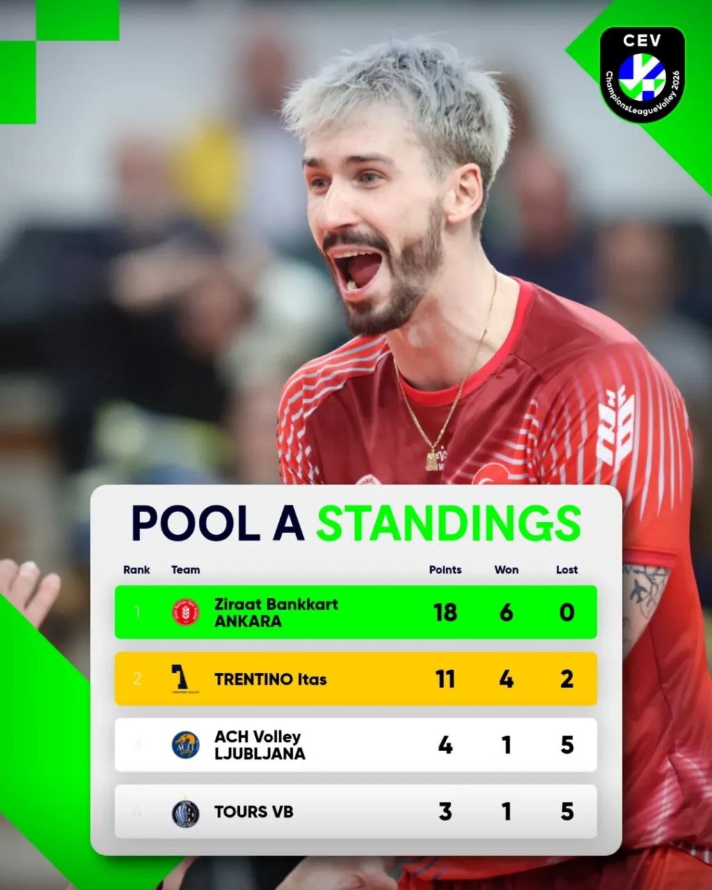 Три клуба прошли групповой этап без поражений – «Зираатбанк», «Перуджа» и «Люблин». Но только турецкий гранд избежал потери очков, выиграв шесть матчей с общим счётом 18:3.