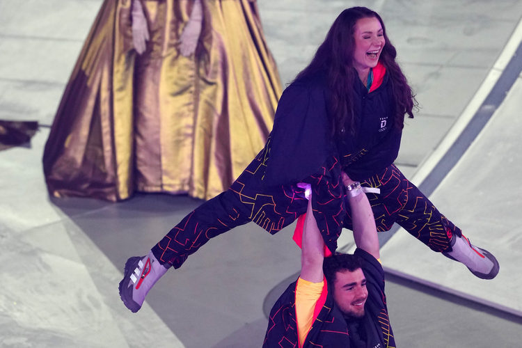9. Наших спортсменов на церемонию в этот раз пустили. Вот только в официальной трансляции их никак не показали. Осталось только смотреть их соцсети. На «кружочке» – ски-альпинист Никита Филиппов и лыжник Савелий Коростелев. Компанию им составили фигуристы Петр Гуменник и Аделия Петросян, а также лыжница Дарья Непряева, которая в тот день прошла лыжный марафон. (Фото: соцсети)