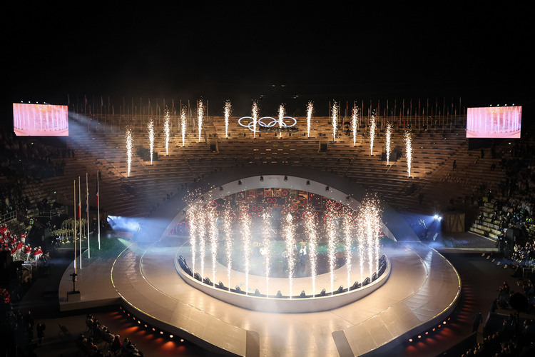 5. Надо отдать должное: многие организаторы Олимпиад просто «забивают» на закрытие, превращая его в простой концерт с приглашением именитых музыкантов. Итальянцы на самом деле тоже могли так сделать, и им всё равно ничего бы не сказали. Потому что как красиво было на этой античной арене! Вот спортсмены выходят на неё, словно гладиаторы.
