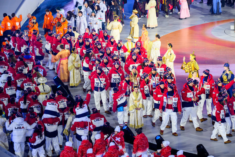 3. Флаги стран, а затем и спортсмены зашли на арену по красной дорожке, прямо как в настоящем театре.