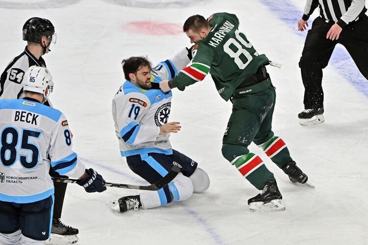 Эффектно проявил себя и защитник «Ак Барса» Карпухин, который в концовке матча подрался с легионером «Сибири» Андреоффом. Драка получилась очень быстрой – Карпухин отправил соперника в нокдаун после первого же точного удара в челюсть.
