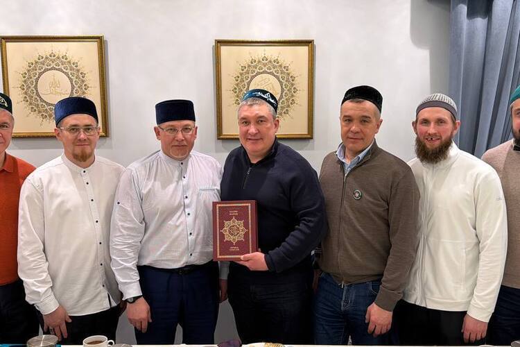 С ним были защитник команды Альберт Яруллин, генеральный менеджер клуба Марат Валиуллин, исполнительный директор Мансур Усманов, а также глава департамента «Татнефти» в Казани Дамир Мухаметшин и представители Духовного управления мусульман РТ.