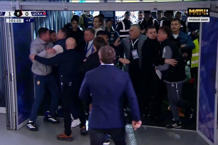 Матч 21-го тура чемпионата России между «Балтикой» и ЦСКА (1:0) завершился потасовкой с участием главных тренеров.