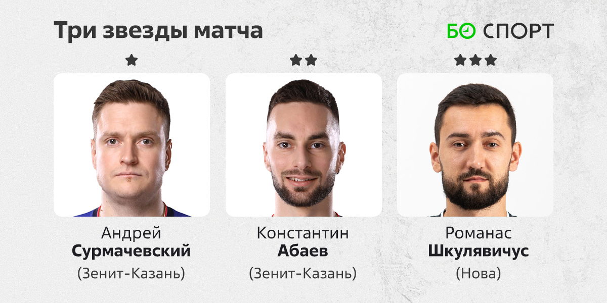 «Нова», напротив, в преддверии плей-офф решила сыграть самым боевым составом. Вернулся в игру даже Сергей Савин, который пропустил три предыдущих матча. Самарцы не справились с приёмом (10 ошибок), хуже выглядели в атаке, но забрали концовку третьего сета благодаря отличной игре Романаса Шкулявичуса (19 очков, +13, 4 блока). А вот его визави Лубурич обстучал блок и проиграл очень много мячей (17 очков, +4). Казань вели за собой доигровщики. Особенно полезен был Сурмачевский – и на подаче, и в атаке, и в приёме, и в защите.