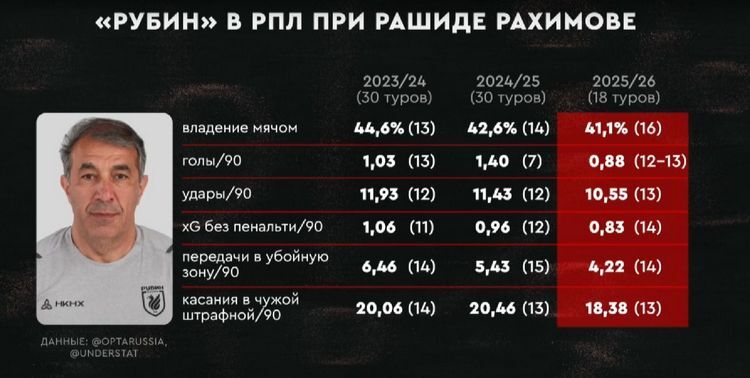Слова Рахимова – контраст с мнением нынешнего главного тренера «Рубина» Артиги. Испанец настаивает, чтобы его команда играла в более доминирующей манере и больше владела мячом в лиге. Рахимов слова Франка открыто не критиковал, но во время разговора подчеркнул: «Ну, и сейчас – где оно, владение мячом?»