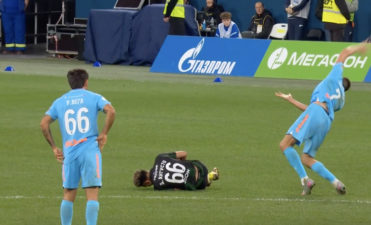 В попытке обработать мяч, бразилец двинул шипами по ноге Сперцяна. После столкновения оба закричали так, что это было слышно не только на весь стадион, но и в телетрансляции. Естественно, футболисты тут же оказались на газоне. Только вот медицинская помощь понадобилась капитану южан, а вот Педро поднялся, куда быстрее. Пока врачи помогали игроку гостей, Карасёв пошёл пересматривать столкновение на VAR-мониторе. Посовещавшись с коллегами, он решил выгнать полузащитника «Зенита» с поля.