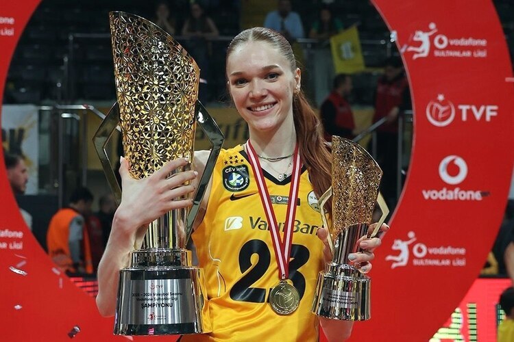 Российская доигровщица Марина Маркова меньше месяца назад стала MVP победного для «Вакифбанка» Кубка Турции, а теперь признана самым ценным игроком финала чемпионата страны. 25-летняя волейболистка внесла огромный вклад в победу своей команды в серии с «Фенербахче» (3–2). В решающем пятом матче она наколотила 26 очков – вдвое больше, чем другая россиянка Арина Федоровцева, которая играла по другую сторону сетки.